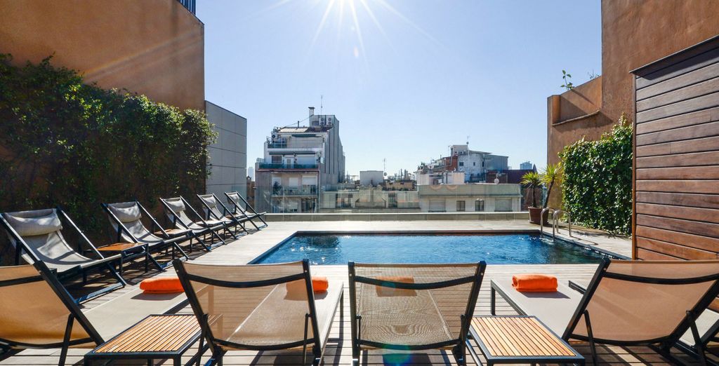 Boutique hotel nell'Eixample che conquista con la sua terrazza panoramica e piscina all'ottavo piano, perfetta per momenti di relax con vista sulla città. Design contemporaneo e atmosfera accogliente caratterizzano gli spazi comuni e le camere. A pochi passi da Passeig de Gràcia e dalle principali attrazioni moderniste. Ideale per chi cerca comfort, stile e una posizione centrale per esplorare Barcellona senza rinunciare a momenti di tranquillità.