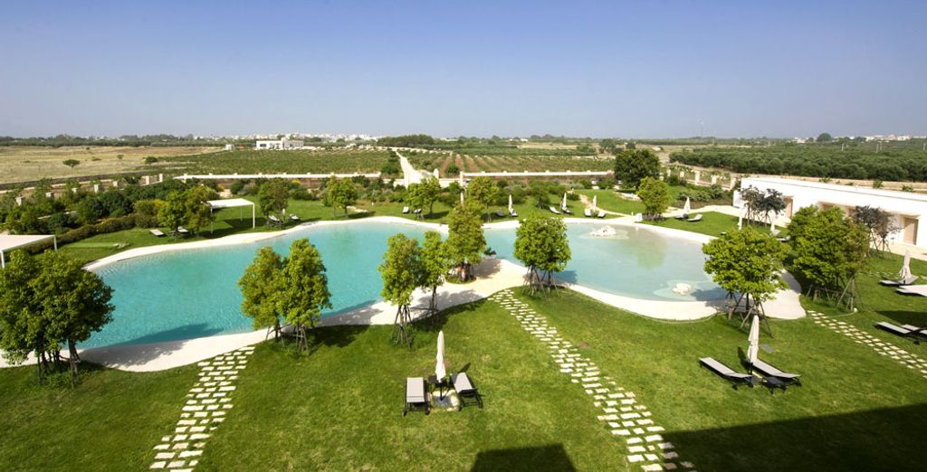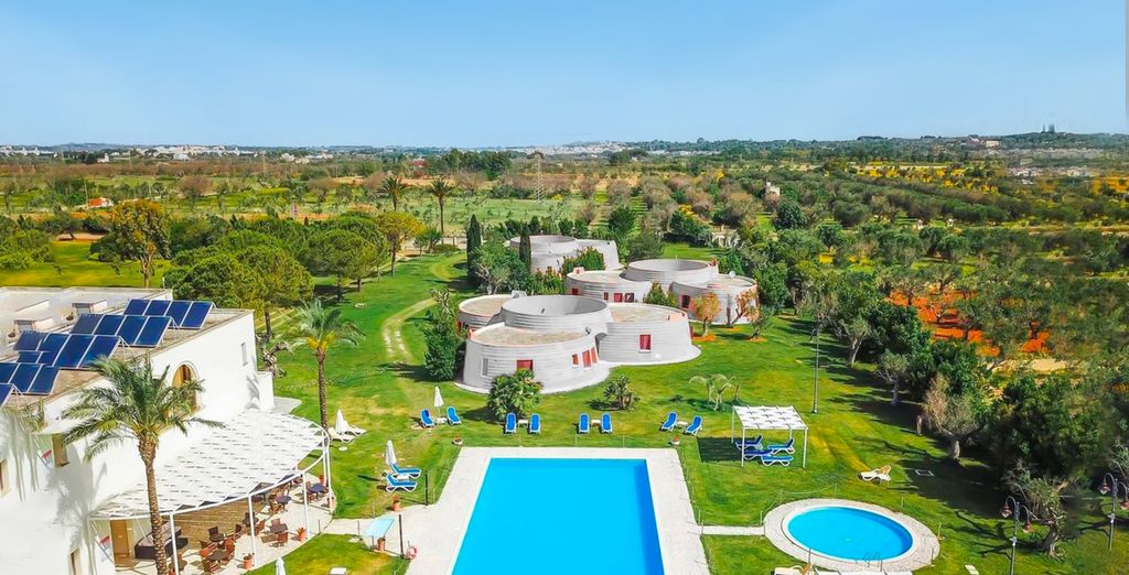 Tenuta di charme immersa in una vasta piantagione di ulivi secolari, Furnirussi Tenuta 5* offre un'esperienza autentica nella campagna salentina. Piscina panoramica, SPA con trattamenti naturali, ristorante che valorizza i prodotti della proprietà e camere eleganti in stile masseria. Ideale per chi cerca tranquillità e contatto con la natura, a breve distanza dalle spiagge adriatiche e dal centro di Lecce. Perfetto per coppie e viaggiatori in cerca di autenticità.