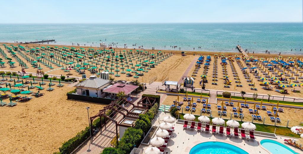 Immerso nella suggestiva pineta di Jesolo, questo hotel 4 stelle vanta un giardino che confina direttamente con la spiaggia, offrendo un accesso privilegiato al mare in un contesto naturale. Le due piscine esterne e la vasca idromassaggio garantiscono momenti di puro relax, mentre il servizio spiaggia incluso in molte offerte rappresenta un valore aggiunto significativo. Perfetto per famiglie con bambini e per chi desidera unire mare e natura.