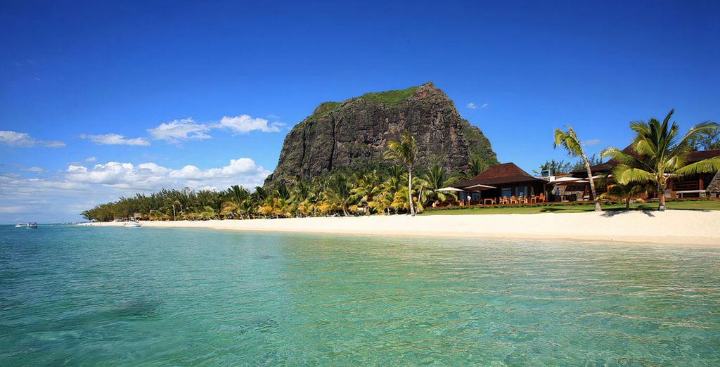 Resort di lusso circondato dalla vegetazione tropicale, è affacciato sulla spiaggia bianca di Le Morne.