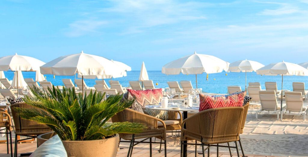 Ciò che amiamo: le camere con vista panoramica sul Mediterraneo, la spiaggia privata La Plage 45 e la cucina raffinata che celebra i sapori della Costa Azzurra.
