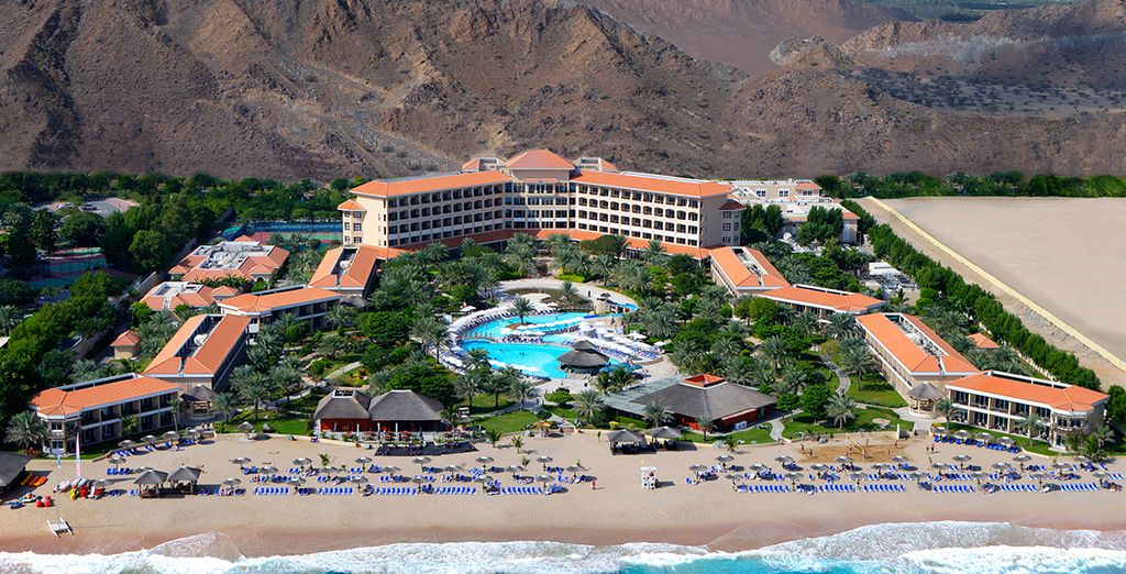 Situato direttamente sul Golfo di Oman, questo resort 5 stelle vanta una spiaggia privata e il rinomato centro benessere Spa Al Aqah. Le camere eleganti offrono vista mare, mentre i ristoranti propongono cucina internazionale e specialità mediorientali. Ideale per coppie e famiglie, il resort dista circa 90-150 minuti dall'aeroporto di Dubai. Le offerte last minute includono mezza pensione e accesso alle piscine panoramiche.