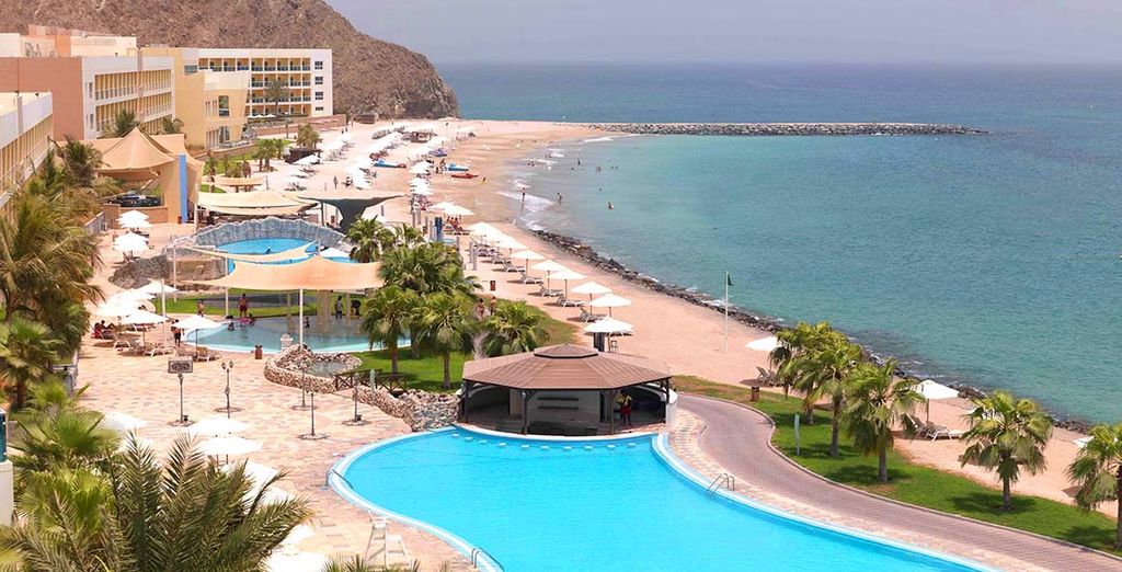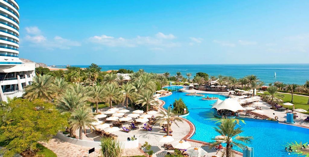Moderno resort fronte mare ad Al Aqah, il Fujairah Rotana combina design contemporaneo e comfort di alto livello. La spiaggia attrezzata, il centro benessere completo e le numerose attività per famiglie lo rendono perfetto per ogni tipo di viaggiatore. Le offerte last minute propongono mezza pensione o formula All Inclusive, con accesso a piscine, sport acquatici e club per bambini.