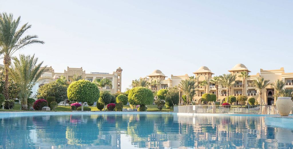 La raffinata località di El Gouna merita il soprannome di Venezia del Mar Rosso grazie ai canali e alle lagune che caratterizzano la sua urbanistica unica. Lo Sheraton Miramar si integra perfettamente in questo contesto con un'architettura che dialoga con il paesaggio lagunare. Le camere spaziose offrono viste sul mare o sulle lagune interne, mentre i balconi privati diventano osservatori privilegiati per ammirare il tramonto. Le piscine a sfioro creano continuità visiva con le acque circostanti. La spiaggia privata garantisce accesso diretto al Mar Rosso con fondali ricchi di vita marina. El Gouna offre un'esperienza diversa rispetto a Hurghada, più tranquilla e sofisticata, con una marina elegante, un campo da golf championship e un centro città pedonale ricco di boutique e ristoranti gourmet. I ristoranti del resort propongono cucine internazionali di alto livello. Il centro benessere di lusso offre trattamenti esclusivi. Le escursioni incluse permettono di esplorare El Gouna in barca attraverso i canali. L'atmosfera cosmopolita attrae viaggiatori che cercano un'esperienza più chic e meno turistica.