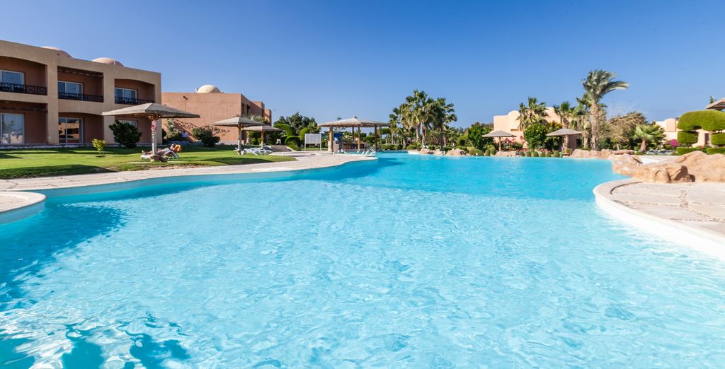 Salendo di categoria, il Lahami Bay Beach Resort rappresenta l'apice del lusso discreto in questa regione del Mar Rosso. La struttura occupa una baia naturale protetta, circostanza geografica rara che garantisce acque sempre calme e trasparenti, ideali tanto per famiglie con bambini quanto per coppie in cerca di romanticismo. L'architettura del resort si ispira ai villaggi nubiani tradizionali, con costruzioni basse dalle forme arrotondate dipinte in tonalità calde ocra e terracotta, integrate armoniosamente nel paesaggio desertico circostante. Gli spazi comuni sono stati concepiti come veri salotti all'aperto, con aree lounge arredate con divani bassi e cuscini colorati, fontane decorative, pergolati ombreggiati dove rilassarsi leggendo o semplicemente contemplando il panorama marino. Le camere superior e deluxe offrono standard elevatissimi: superfici generose, arredi eleganti combinando legni pregiati e tessuti naturali, bagni marmorei con vasca e doccia separate, minibar rifornito quotidianamente, servizio in camera disponibile 24 ore su 24. Le suite aggiungono piscine private, accesso diretto alla spiaggia tramite giardini esclusivi, maggiordomi personali dedicati a soddisfare ogni richiesta.