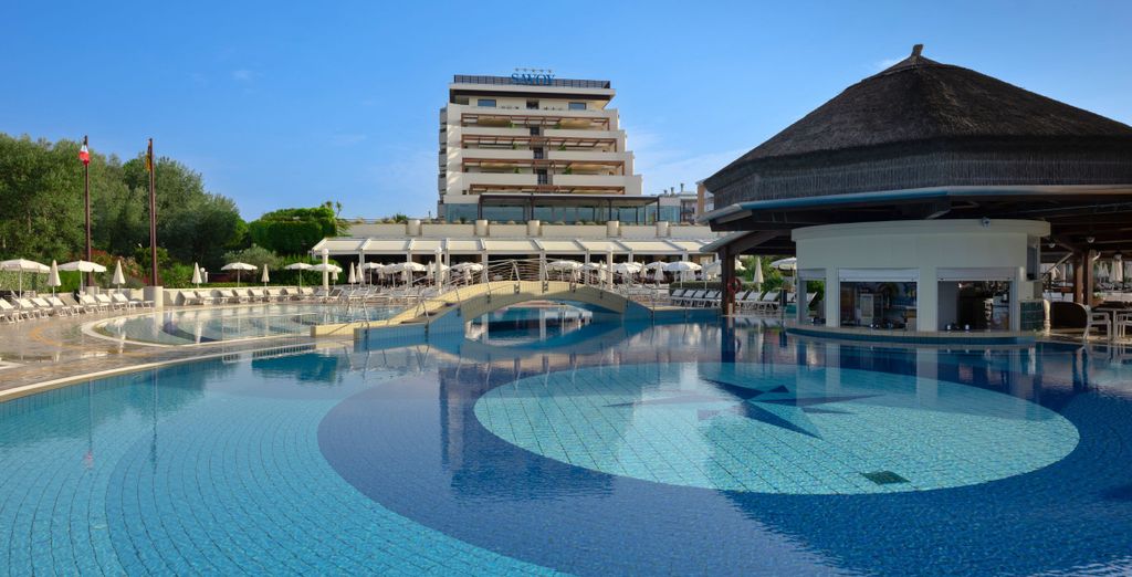 Il Savoy Beach Hotel & Thermal Spa 5* incarna l'eccellenza delle vacanze di prestigio sulla costa adriatica, offrendo un'esperienza completa che unisce relax termale, benessere e comfort di alto livello. Questo resort di alto livello si affaccia direttamente sul mare, regalando agli ospiti viste mozzafiato e accesso privilegiato alla spiaggia privata. Le camere e suite sono arredate con eleganza contemporanea e dotate di ogni comfort moderno, aria condizionata e tecnologie all'avanguardia. Gli spazi sono pensati per garantire privacy e tranquillità, con balconi che si aprono su panorami indimenticabili.