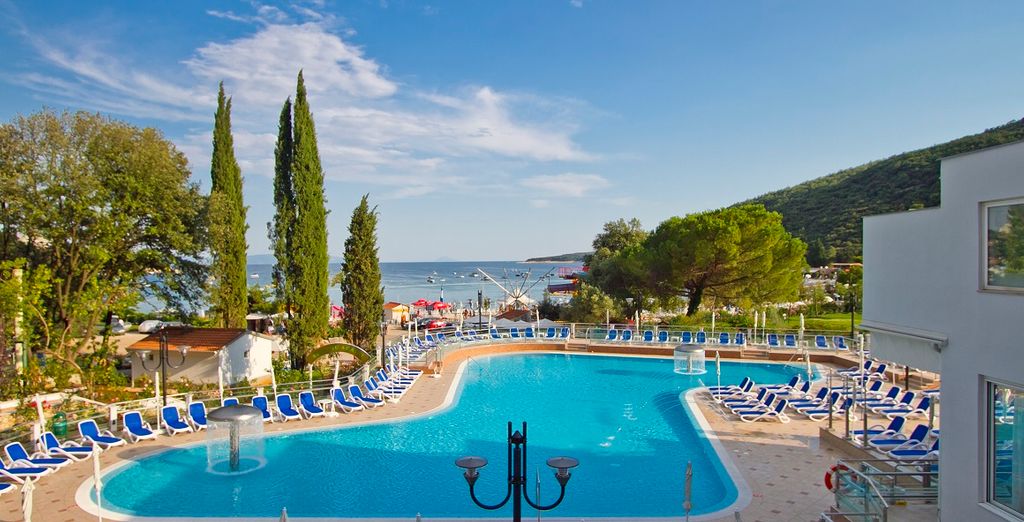 Le piscine multiple soddisfano diverse esigenze: quella principale per nuotare e socializzare, quelle più piccole per momenti di tranquillità, quella dedicata ai bambini dove le famiglie trascorrono pomeriggi spensierati. Il centro benessere propone trattamenti che utilizzano prodotti naturali della regione, dalle erbe aromatiche dell'entroterra ai sali marini dell'Adriatico, componendo rituali rigeneranti per corpo e mente. La formula mezza pensione o pensione completa permette di gustare la varietà della cucina sloveno-croata senza preoccuparsi dell'organizzazione dei pasti.