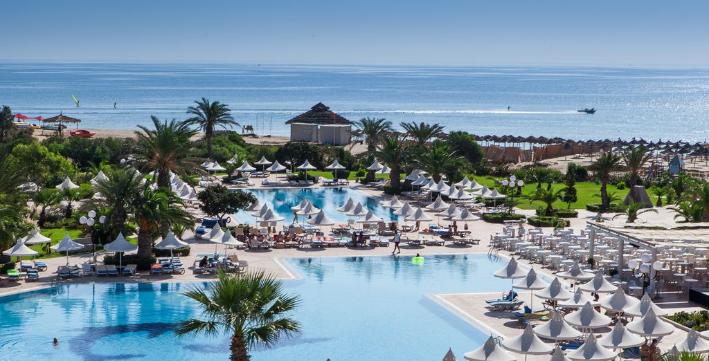 Il resort dispone di piscine multiple, alcune con zone idromassaggio, un centro fitness ben attrezzato, campi da tennis e una vasta gamma di sport acquatici. La spa offre trattamenti di alto livello, massaggi, hammam e programmi benessere personalizzati, ideali per chi desidera rilassarsi e rigenerarsi. Le famiglie trovano servizi dedicati ai bambini, con miniclub e attività organizzate, mentre le coppie possono godere di momenti romantici sulla spiaggia privata o nei giardini curati. La posizione strategica vicino a Monastir permette di esplorare la medina, il ribat fortificato e il mausoleo di Habib Bourguiba, oltre a organizzare escursioni verso Sousse, El Jem e Kairouan.