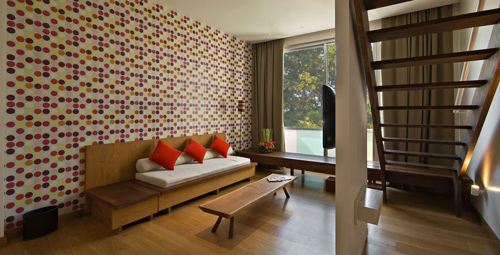 - Duplex Suite (50 m²/massimo 3 persone di cui 2 adulti): distribuita su due piani, la duplex suite renderà memorabili le vostre vacanze grazie a suoi spazi generosi con influenze pop.