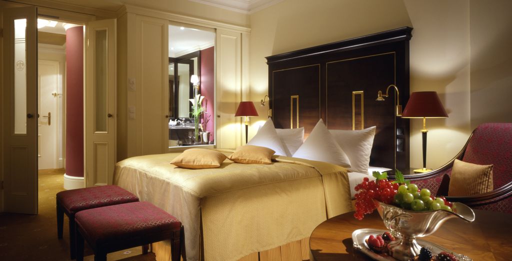 Scegliete la camera Grand Deluxe con interni classici e caldi per un'atmosfera lussuosa. Sfruttate al massimo tutti i comfort moderni arricchiti con ancora più spazio e un bagno separato, per un soggiorno davvero confortevole.