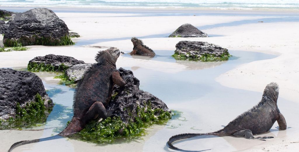Raggiungerete a piedi Tortuga Bay, una delle spiagge più belle dell'arcipelago (2 ore di viaggio andata e ritorno). Sul piccolo sentiero che costeggia la baia, vicino alle mangrovie, potrete osservare il tra le mangrovie, si potrà osservare la ricca fauna delle Galapagos, tra cui numerose uccelli, iguane e tartarughe durante la stagione della deposizione delle uova e persino squali in lontananza. squali.