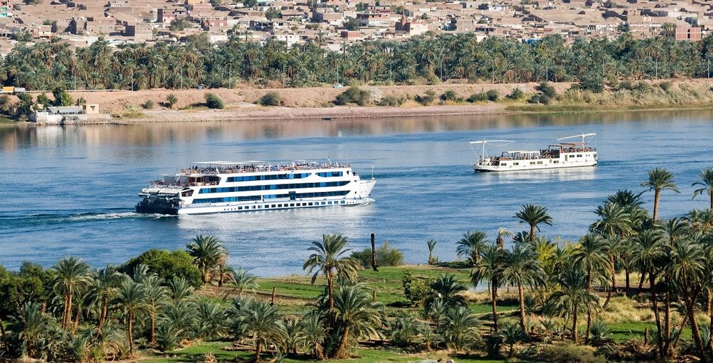 Partirete alla scoperta del Nilo su una nave 5* che dispone di un bel salone con reception, un bar, un ristorante, negozi, un ponte soleggiato con piscina oltre a cassette di sicurezza e accesso a Internet a pagamento. In base ai giorni, vi imbarcherete in una delle seguenti navi: