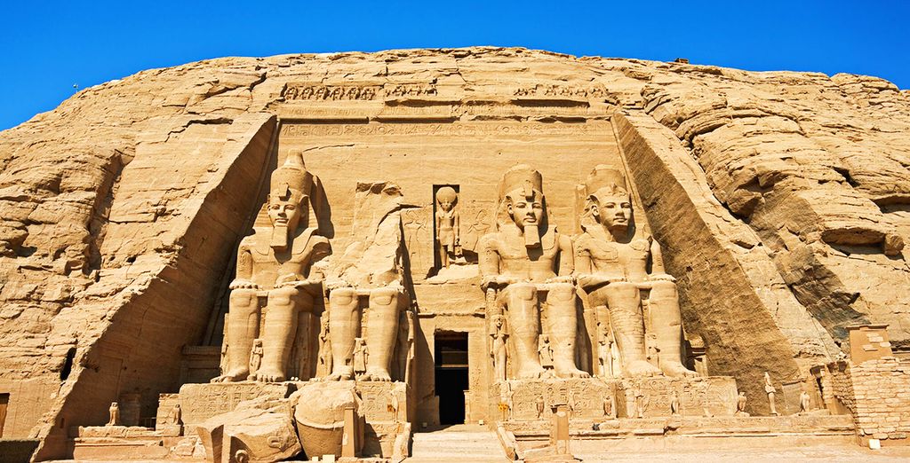 Costruito dal grande faraone Ramesse II nel XIII secolo a.C., le quattro statue all’entrata del tempio principale rappresentano la grandezza e il potere di Ramesse e della sua sposa Nefertari.