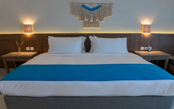 Per questa offerta abbiamo riservato per voi in upgrade camera Superior vista mare, camera Romantic Deluxe con vista sulla piscina e sul mare, camera Club Swim Up con vista sulla piscina o Suite Executive con vista panoramica sul mare, a vostra scelta.