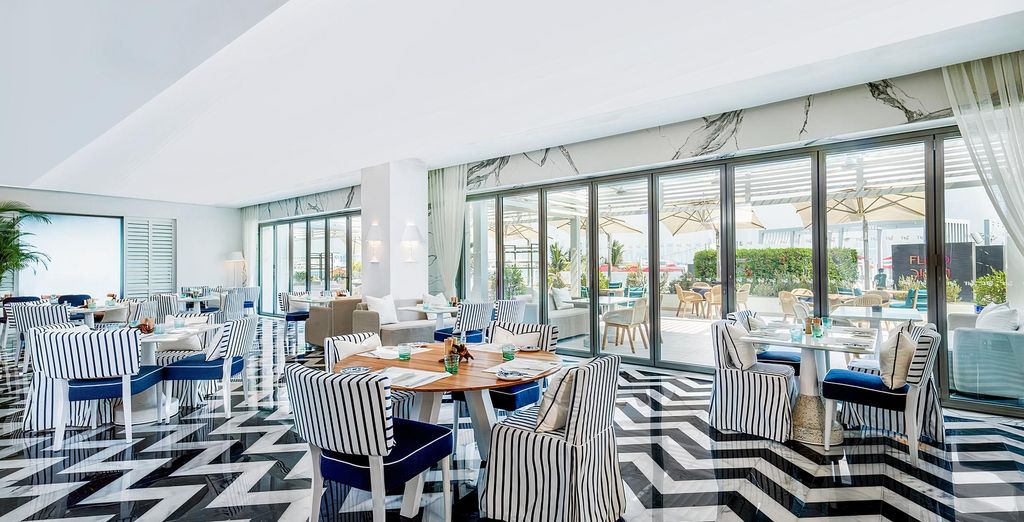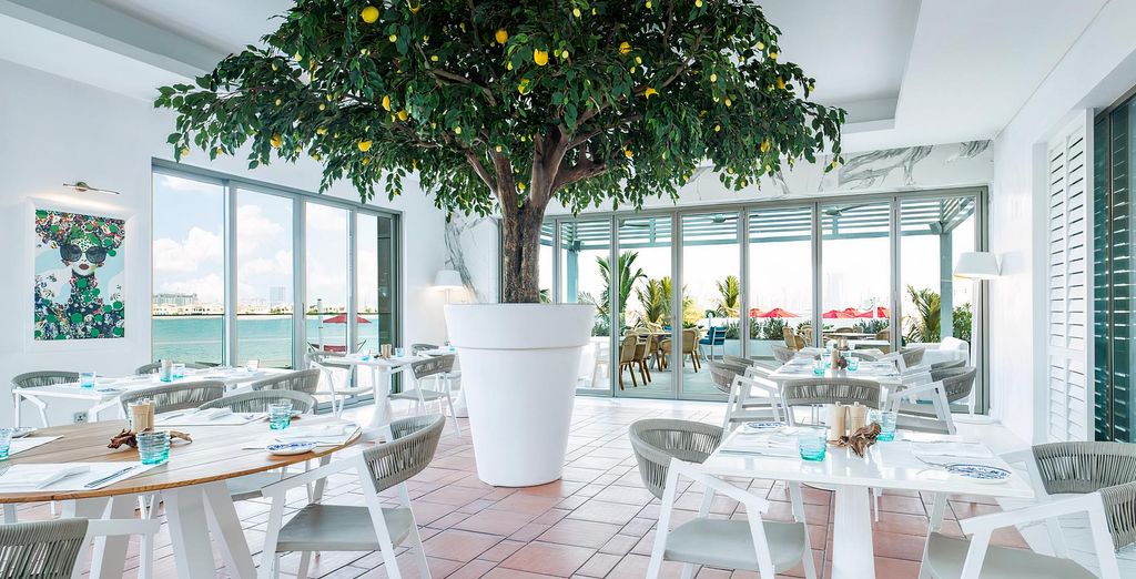 Se volete far viaggiare le vostre papille gustative, recatevi al ristorante Envy. Qui avrete l'occasione perfetta per gustare la cucina mediterranea in un ambiente dinamico o sulla terrazza all'aperto. Tutto questo mentre godrete di una vista mozzafiato sui tetti del Palm e su Dubai! Cercate una pausa rilassante? Sedetevi con un drink al Fluid bar e godetevi il panorama unico sul lungomare...