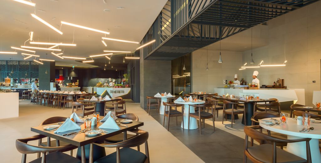Gli appassionati team culinari dell'hotel propongono una cucina internazionale in ristoranti e bar contemporanei a tema, tra cui una stuzzicante gastronomia, una lussuosa shisha lounge e ristoranti gourmet. Preparate i vostri sensi a un'esperienza culinaria eccezionale con una cucina personalizzata a colazione e a cena presso il sofisticato Accents Restaurant. Al Ginter potrete gustare cocktail innovativi e un'impressionante selezione di gin, accompagnati da una selezione di formaggi esclusivi, salumi e piatti da condividere, e da una musica inebriante.