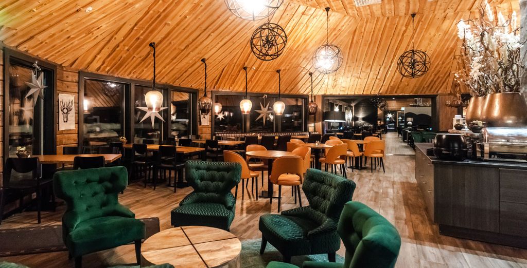 Il primo pasto della giornata viene servito nel ristorante principale. Il menu prevede un pasto completo per far fronte alle basse temperature esterne! La sera, recatevi nell'accogliente ristorante a buffet Lapponia. Qui potrete gustare la cucina finlandese a buffet o à la carte. Una vera delizia!