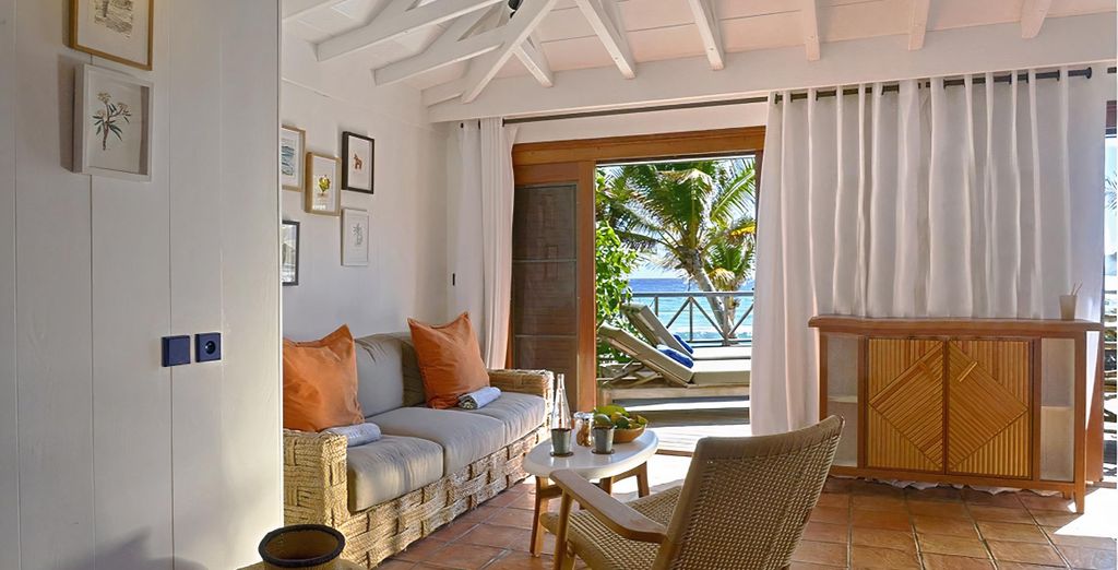 - Rilassarvi nell'eleganza e nel comfort della vostra camera contemplando la vista del Mar dei Caraibi dalla vostra terrazza