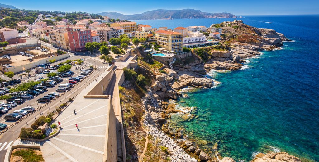 Fate una gita in barca e nuotate nella riserva naturale di Scandola, famosa per le sue rocce vulcaniche dai colori sgargianti, prima di visitare un piccolo villaggio di pescatori e concludere la giornata con un aperitivo per ammirare la baia di Calvi al tramonto.