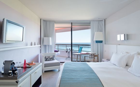 Situate principalmente tra il 4° e il 7° piano, le camere Deluxe vantano una straordinaria vista sul mare, sulla baia di Cannes e sulle isole Lérins. Spaziose e luminose, dispongono di una terrazza privata e di un bagno con toilette separata.
