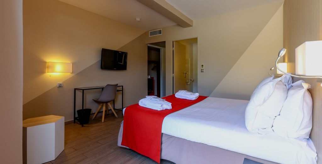 Dopo una giornata all'aria aperta, ad attendervi ci sarà la vostra camera Superior Doppia, dove sarete accolti da sobrietà e un'atmosfera rilassata, perfetta per un po' di riposo dopo una lunga giornata di visite turistiche.