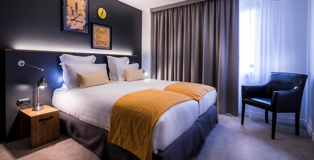 Con 101 camere e 11 suite, l'hotel vi accoglie nei suoi spazi modulari che combinano design, praticità e comfort. Decorate nei toni del marrone e dei toni senape, le camere e le suite offrono ampie zone soggiorno.