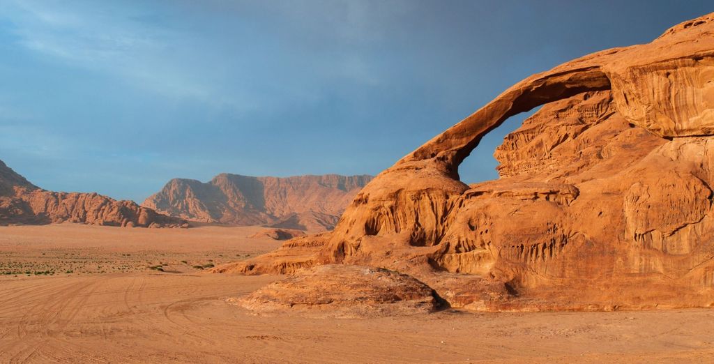 Alzatevi presto per godervi l'alba in questo deserto silenzioso! Fate colazione con i beduini e preparatevi per un tour di 2 ore in pick-up 4X4 per ammirare lo splendore di questo paesaggio millenario.