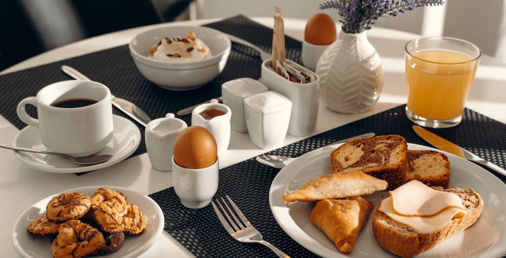 Iniziate la giornata con stile sulla terrazza sul tetto, gustando la vostra colazione ammirando la vista panoramica sulla città. Per un vero e proprio viaggio culinario, lasciatevi tentare dai sapori autentici della Grecia: gustate moussakas che si sciolgono in bocca, souvlaki alla griglia o spanakopitas croccanti nei ristoranti circostanti. Preferite cucinare da soli? Passeggiate al mercato locale e scegliete i prodotti freschi per creare il vostro banchetto greco. Una festa per gli occhi e per le papille gustative!