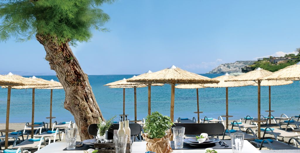 L'hotel offre 5 ristoranti à la carte o a buffet. I 3 pasti principali saranno serviti nel ristorante a buffet Red Pepper, che offre un'ampia scelta di buffet con antipasti e insalate, piatti e dessert ispirati alla cucina mediterranea. Potrete gustare il vostro pranzo o la vostra cena in una luminosa sala da pranzo o sulla terrazza, con una magnifica vista sulla spiaggia e sulla baia di Cladissos.