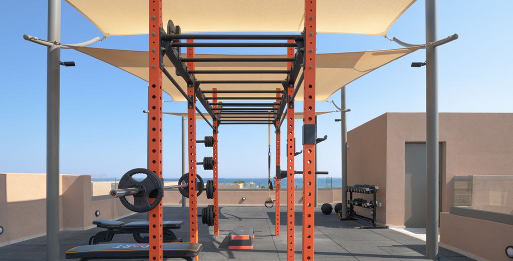 Iniziate la giornata con un allenamento nel centro fitness all'aperto sul tetto con istruttore certificato.