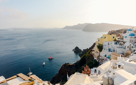 Scoprite la storia dell'isola godendo di viste spettacolari, ammirate l'architettura dei suoi villaggi tradizionali, godetevi le sue spiagge vulcaniche, assaggiate i vini tipici di Santorini e concludete la giornata in bellezza con il tramonto a Oia.