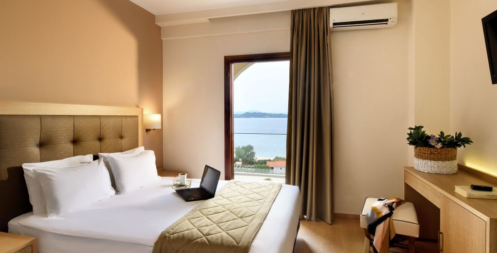 La posizione privilegiata del vostro hotel vi garantisce una vista mozzafiato sul mare, l'isola di Ammouliani e la penisola di Sithonia. Sarete sedotti dallo stile e dall'architettura tipica e dagli interni contemporanei e raffinati di questo hotel 4*.