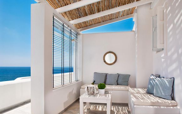 - La vista sul mare dalla vostra elegante Junior Suite, con una confortevole area salotto e veranda privata