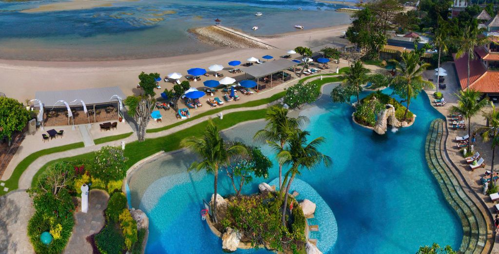 Cercate un rifugio al mare per staccare la spina? Benvenuti all'Hotel Nikko Bali Benoa Beach 5*! Circondato da una rigogliosa vegetazione tropicale, nell'enclave di Tanjung Benoa, questo hotel di lusso vi accoglie in un ambiente eccezionale. Tra l'architettura tipica balinese, l'ospitalità giapponese e l'armonia con la natura il vostro soggiorno sarà di certo indimenticabile!