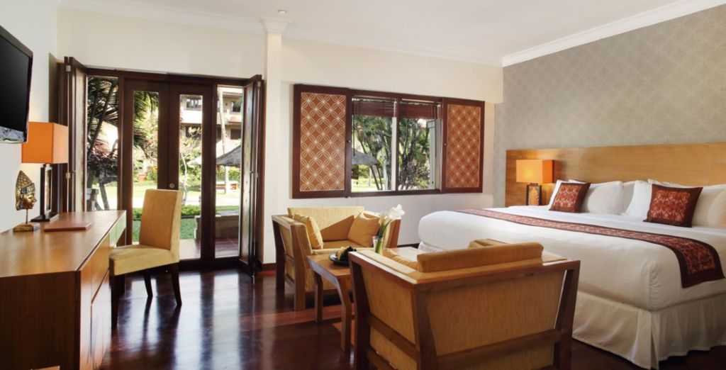 Con una vista rilassante sul giardino tropicale, la vostra camera Deluxe vi accoglierà in un ambiente da sogno. Tra atmosfera balinese e comfort moderno, questo incantevole spazio vi permetterà di ricaricare le batterie in tutta tranquillità.