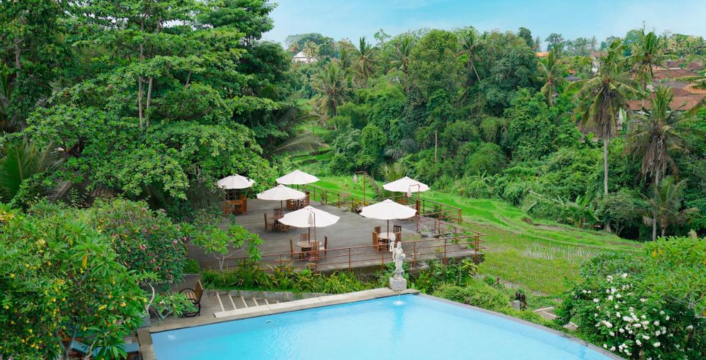 A soli 15 minuti dal centro di Ubud, questo hotel è ideale anche per chi desidera assaggiare il divino cibo di strada o visitare un antico tempio.
