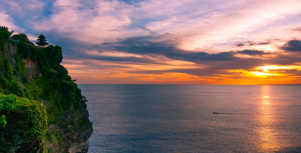 Scoprite il meglio del tramonto di Bali, un'atmosfera romantica con sfumature dorate all'orizzonte, mentre ascoltate il canto di cento locali balinesi che eseguono la danza più popolare a Bali, la Kecak. Questa performance racconta la storia di una storia d'amore esterna tra Rama e Shinta.