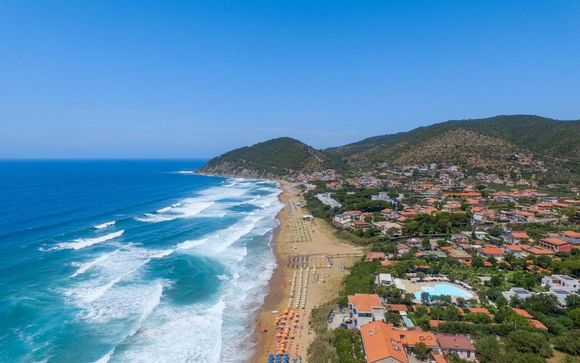 - Godere della posizione fronte mare con accesso diretto alla spiaggia privata attrezzata con lettini e ombrelloni o rilassarsi nella piscina all'aperto, ideale per adulti e bambini, circondata da un ambiente tranquillo