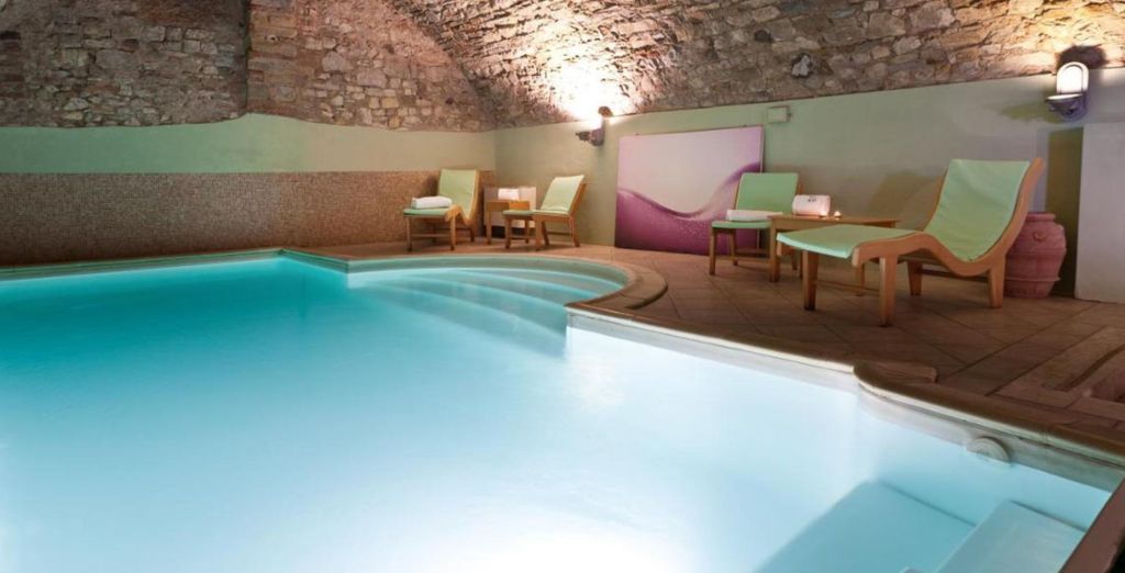 - Un accesso alla piscina idromassaggio coperta e riscaldata al giorno (durata massima 45 minuti, solo su prenotazione)