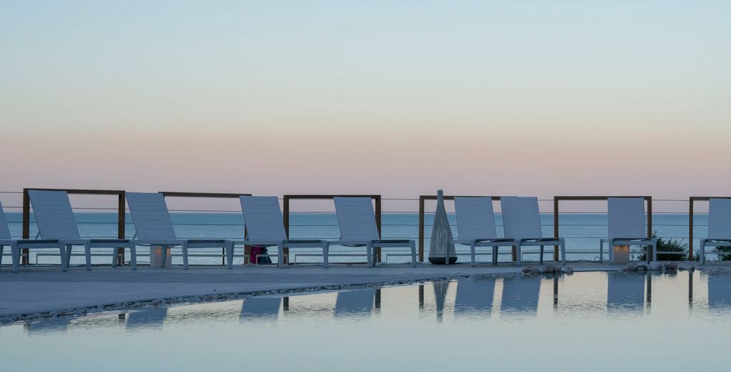 Il resort accoglie i suoi ospiti nell'esclusiva e scenografica spiaggia privata, attrezzata con ombrelloni, lettini e servizio bar (servizio a pagamento). Ammirerete qui le bianche falesie rocciose e la bellezza della natura circostante!
