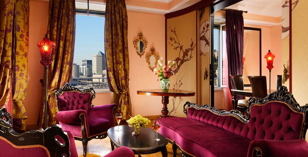 - Suite Presidenziale (62 m²/max 2 persone): cedete al lusso estremo della Suite Presidenziale, munita di vasca idromassaggio, balcone con vista sul mare, un salone del XIX secolo e di una camera privata.