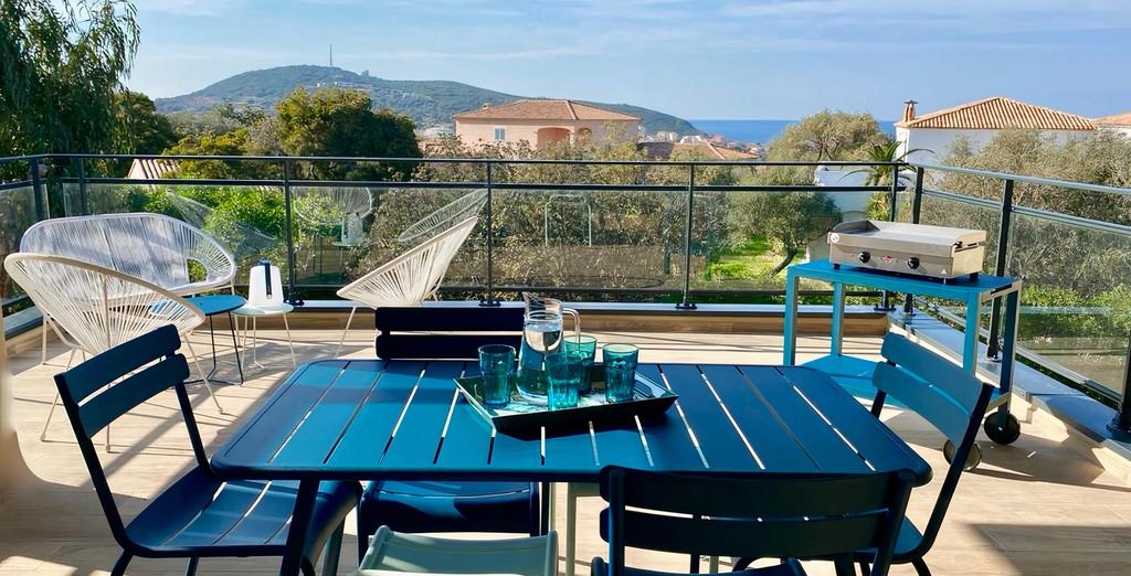 Dotato di una terrazza privata di 27 m² dove potrete gustare deliziosi pasti cucinati su una plancha, condividere momenti conviviali attorno a un tavolo da pranzo o semplicemente rilassarvi in un'area salotto all'aperto.