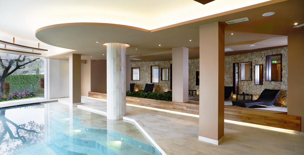 Un centro benessere moderno e accogliente, con una stupenda vista sul Lago di Garda vi aspetta, con marmi e pietre venete dai colori tenui, atmosfera delicata, luci e suoni rilassanti ideati per garantire momenti di armonia, equilibrio psico-fisico ed assoluta tranquillità. Il Percorso Benessere prevede diverse aree, ognuna delle quali è stata concepita per garantire i massimi benefici: laguna salata relax con magnifica vista sul Lago di Garda, bagno turco, sauna, bio-Sauna, docce emozionali e un'area relax con tisaneria.