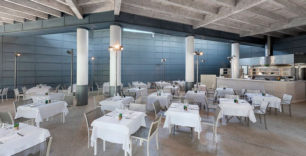 All'interno della struttura, gli ospiti hanno a disposizione diverse opzioni di ristorazione per soddisfare ogni esigenza. Si prega di notare che, oltre al ristorante centrale, è possibile usufruire di un ristorante in spiaggia a pagamento. Inoltre, la pinseria Ethra non si trova all'interno del resort Alborèa.