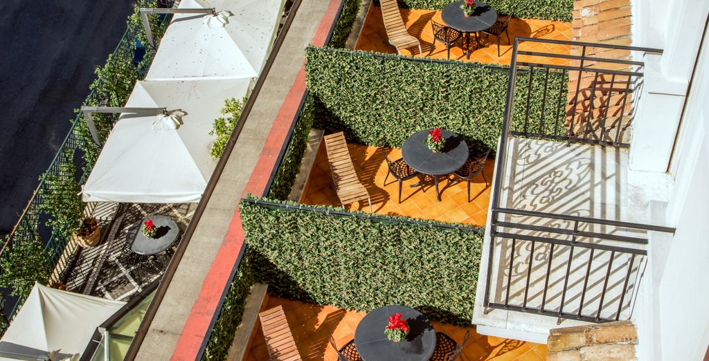 Potrete rilassarvi sulla suggestiva Terrazza degli Aranci, gustare la cucina locale nel ristorante tradizionale o concedervi un momento di benessere nella sala fitness. Una cornice ideale per una pausa romana che resterà impressa nei ricordi.