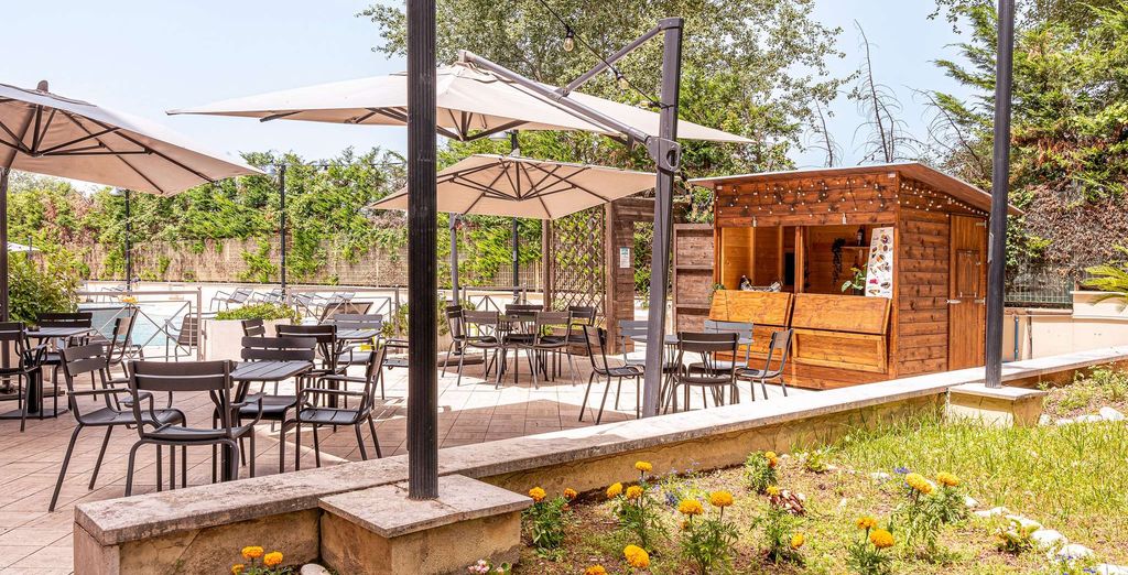 Dopo aver esplorato Roma, rilassatevi sulla terrazza con un bicchiere di vino e assaporate i sapori mediterranei che vi trasporteranno nel cuore della Capitale. Le camere, confortevoli e spaziose, offrono lo spazio ideale per riprendersi da una lunga giornata di visite turistiche - o semplicemente per rilassarsi!