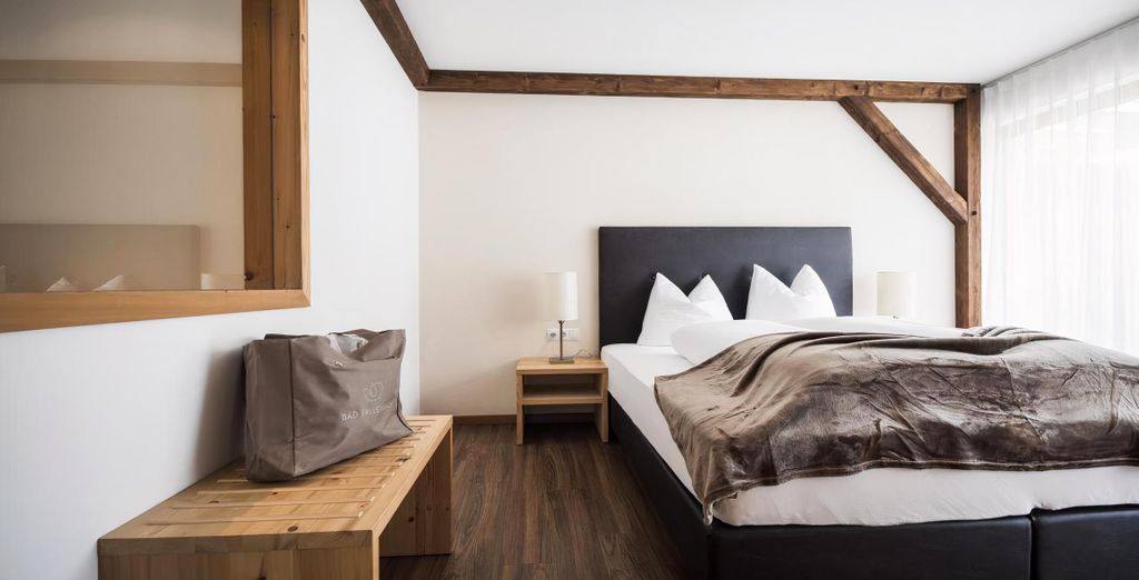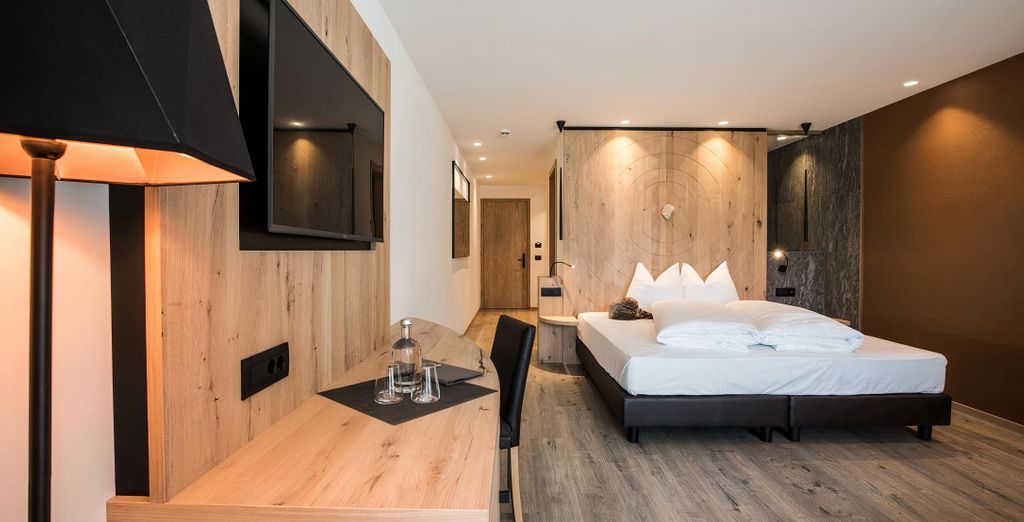 L'ampia Suite Badl è una confortevole suite all’ultimo piano. Dispone di un letto comodo con vista sulle montagne circostanti e sulla valle attraverso la grande finestra panoramica, un lussuoso bagno con grande doccia, doppio lavandino, vasca freestanding con vista sulla camera. La terrazza panoramica di 24 mq verso Sud, lettino prendisole e ombrellone renderanno unico il vostro soggiorno.