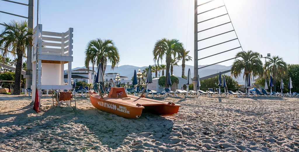 - 2 lettini e 1 ombrellone nella spiaggia dell'hotel