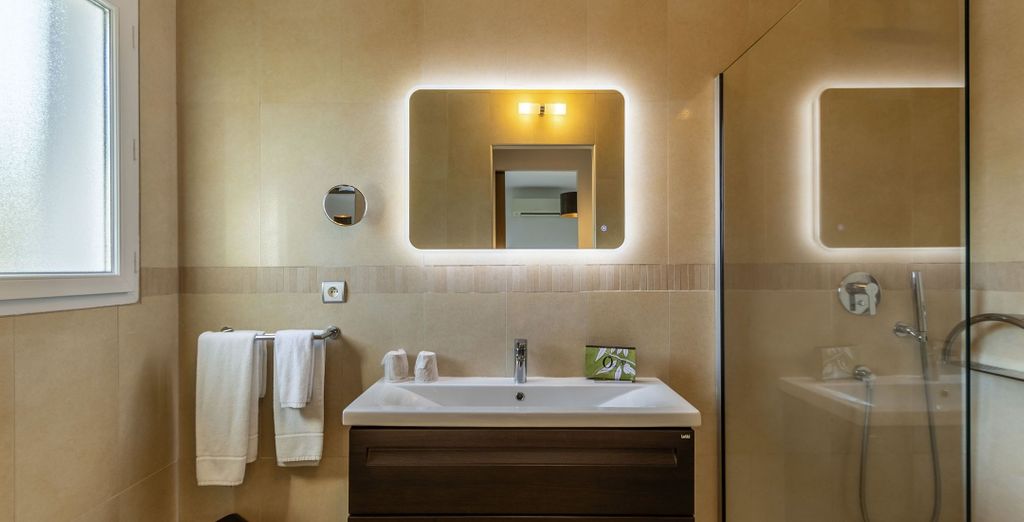 Poi concedetevi un trattamento o un massaggio nell'Espace Bien-Être, a meno che non preferiate una sessione di sauna. Approfittate della fontana di ghiaccio, della doccia sensoriale o della piscina controcorrente sotto il tetto di vetro. Per finire, fate un bagno nella vasca idromassaggio... Siete in vacanza!