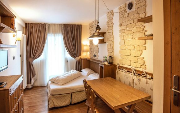 - La sistemazione nelle confortevoli e moderne Family Suite in stile alpino, ognuna dotata di balcone